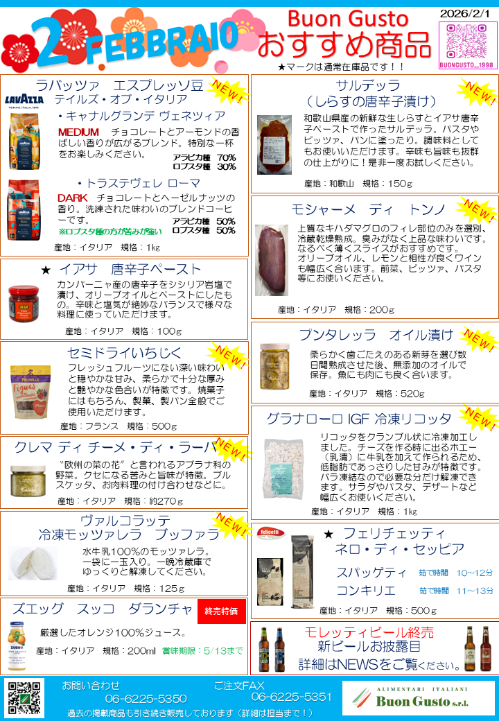 ブォングスト 2026年2月のおすすめイタリア食材